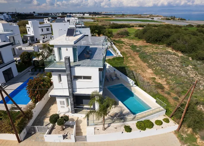 A Seaside Luxury Villa With Heated Pool Paralimni à beira-mar está situada a uma distância aproximada de 5 minutes a pé de Fireman Beach e dispõe de pátio e utensílios para churrasco para uma estadia agradável. Localizada a uma distância de 3.6 km da Praia de Kalamies, esta casa de férias à beira-mar disponibiliza Wi-Fi e parque de estacionamento privado gratuito.